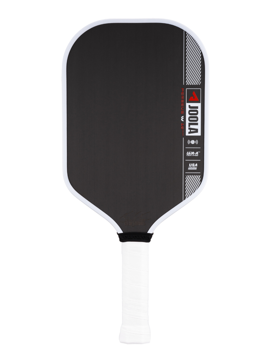 The JOOLA BEN JOHNS PERSEUS PRO IV 16MM PICKLEBALL PADDLE is the ultimate blend of innovation, control, and power. This next evolution of our beloved paddle shape now features patent-pending TechFlex Power (TFP) technology, resulting in improved precision and more confidence with every shot. The optimized weight distribution within the Perseus Pro IV reduces paddle fatigue and provides forgiveness on mishits - giving you more room to play your individual game.